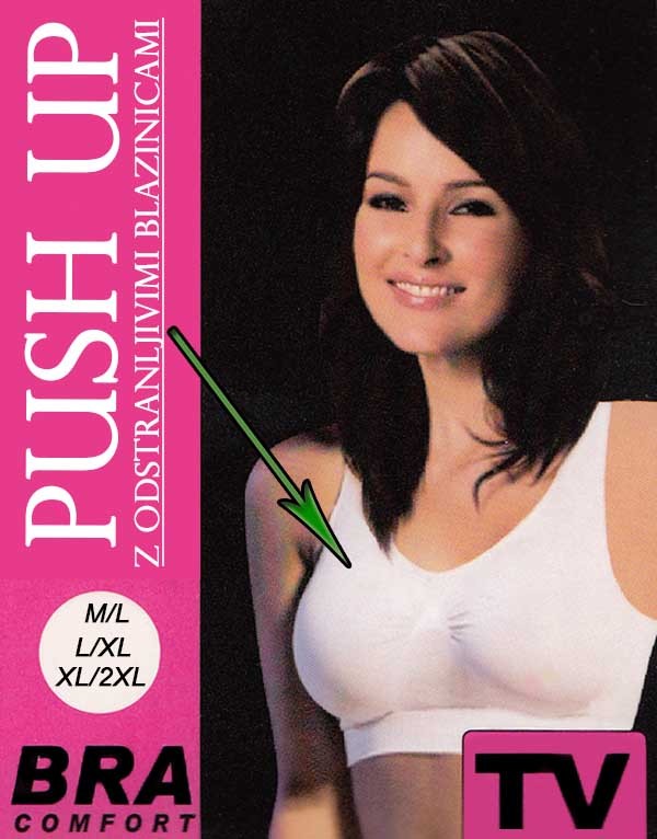 Modrček je narejen je iz zračne mikrofibre, ki se hitro suši, omogoča nemoteno gibanje, daje odlično oporo. Modrček je brezšiven in ima široke naramnice. Košarica ima odstranljive “push-up” blazinice. Spodnji rob daje dodatno podporo prsim. Košarica je primerna tudi za ženske z večjim oprsjem.